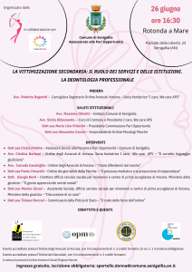 La vittimizzazione secondaria: il ruolo dei servizi e delle istituzioni. La deontologia professionale – ConvegnoMonica Benetti 2531 minute read Data: 26 Giugno 2025 Ora: 16:30 - 18:30 Descrizione EventoIl Comune di Senigallia – Sportello Donna CONVEGNOLa vittimizzazione secondaria: il ruolo dei servizi e delle istituzioni. La deontologia professionale 26 giugno 2025ore 16.30La Rotonda a Mare di Senigallia