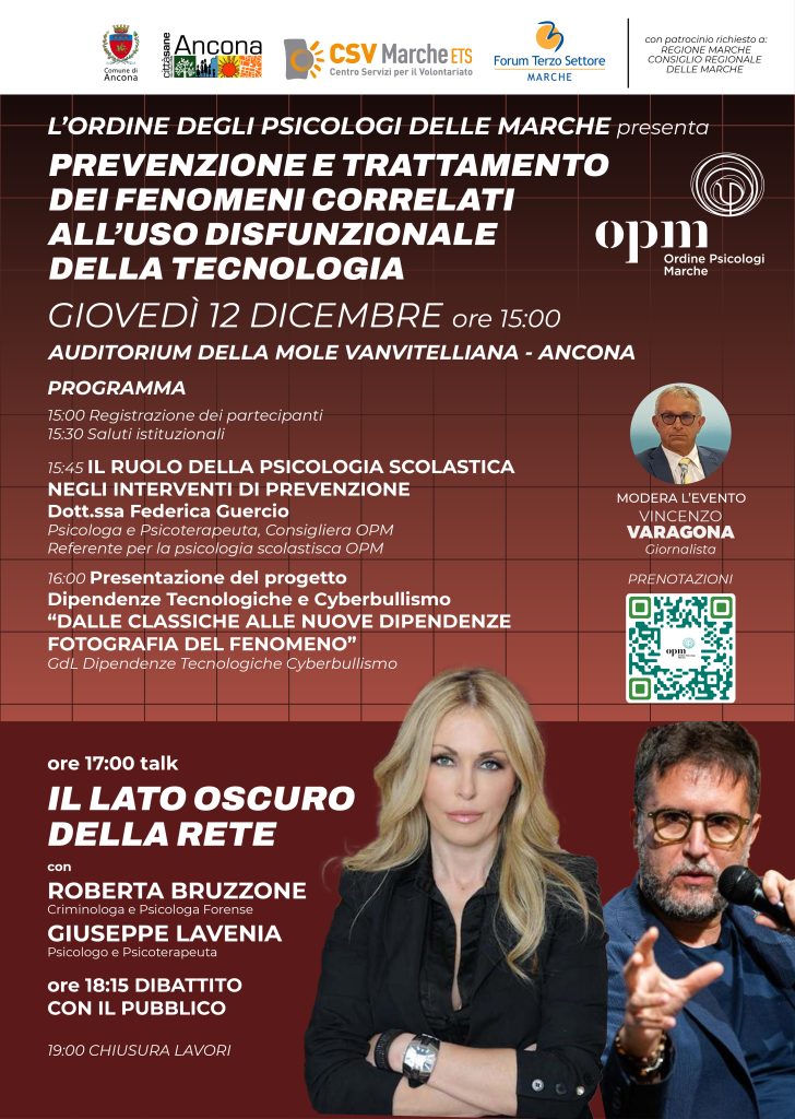 Ancona ospiterà un importante convegno dedicato a due tematiche sempre più attuali e preoccupanti: le dipendenze tecnologiche e il cyberbullismo. L’evento vedrà la partecipazione di esperti di fama nazionale, tra cui il Dott. Giuseppe Lavenia e la Dott.ssa Roberta Bruzzone, figure di riferimento nel campo delle dipendenze e del benessere digitale.